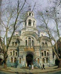 Panteleimonovskaya Orthodox Church, designed by the architects M. Nikonov and L. Prokopovich. In former times, the Church served as a seminary and during Soviet rule, the Church was a planetarium. Either way, Panteleimonovskaya is a true Odessa landmark, difficult to miss when you're heading downtown near the Odessa Train Station.